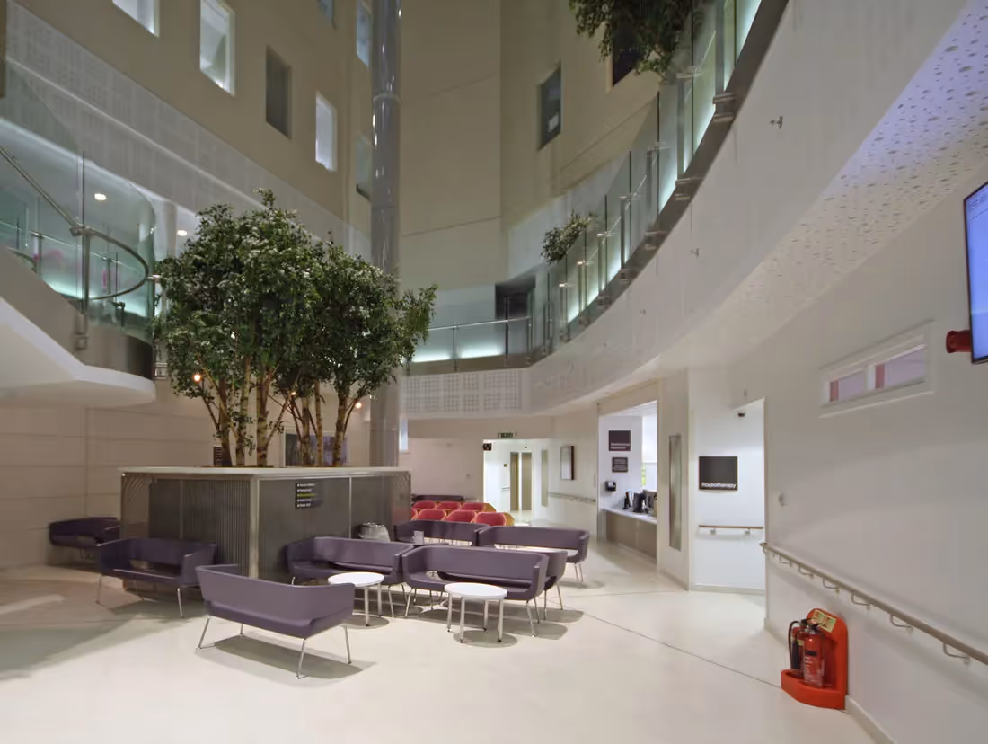 For this large open space at the world famous St Barts in London, plantART were commissioned to install several full scale artificial trees. These indoor trees transform what would otherwise be a very "sterile" environment into a warm and comforting place to be.