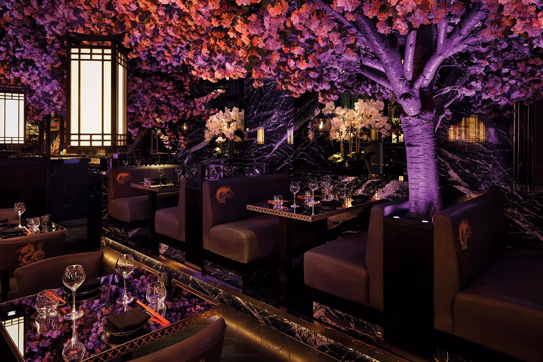The ultimate WOW factor, customers dine under seven large and extensive interlinking artificial cherry blossom trees, as if set in an exclusive cherry orchard. The accompanying photographs of the completed project tell the story, where words fail.